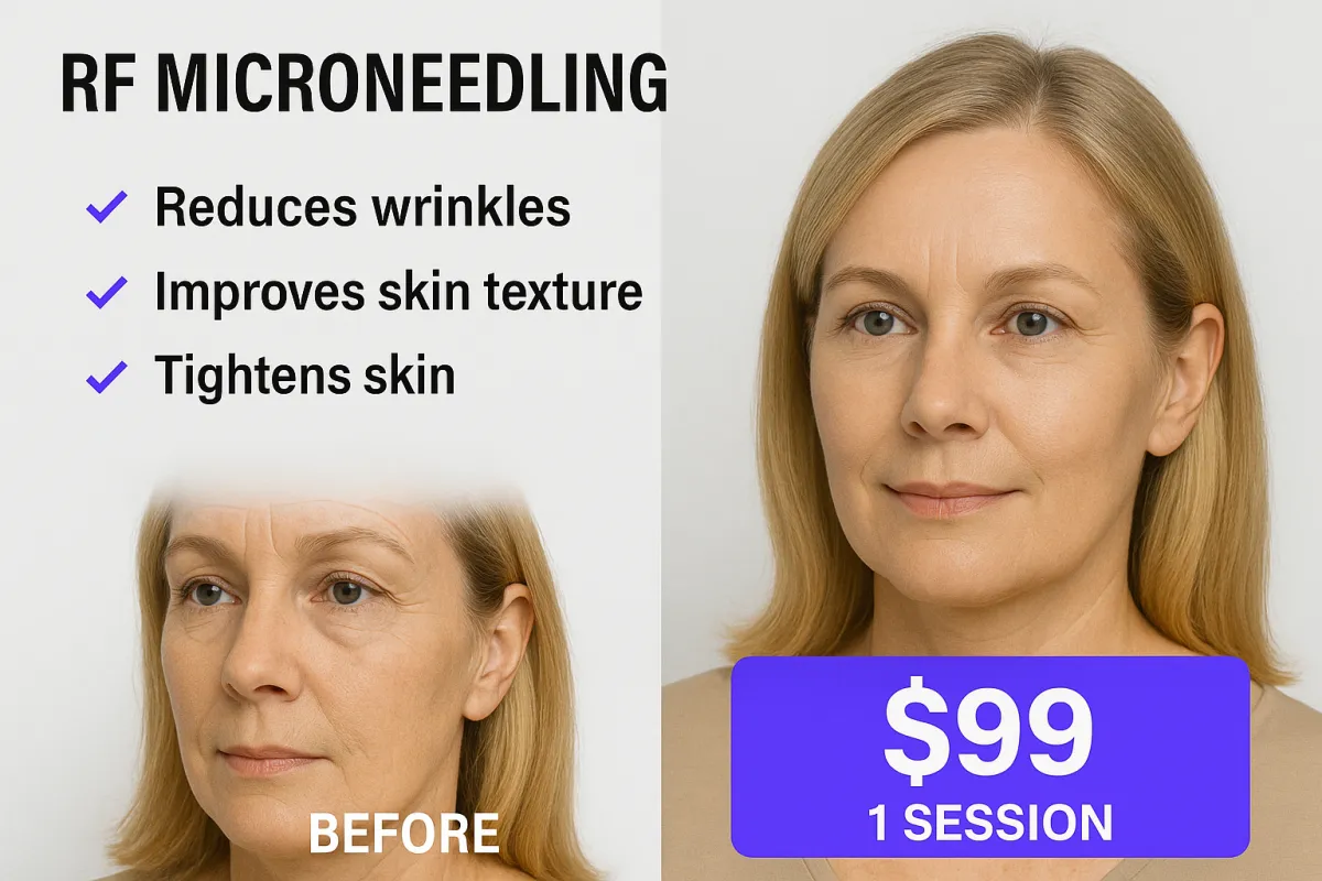 RF Microneedling is a non-invasive skin treatment that combines microneedling with radiofrequency energy to stimulate collagen production and improve skin texture. Here’s why clients love it: